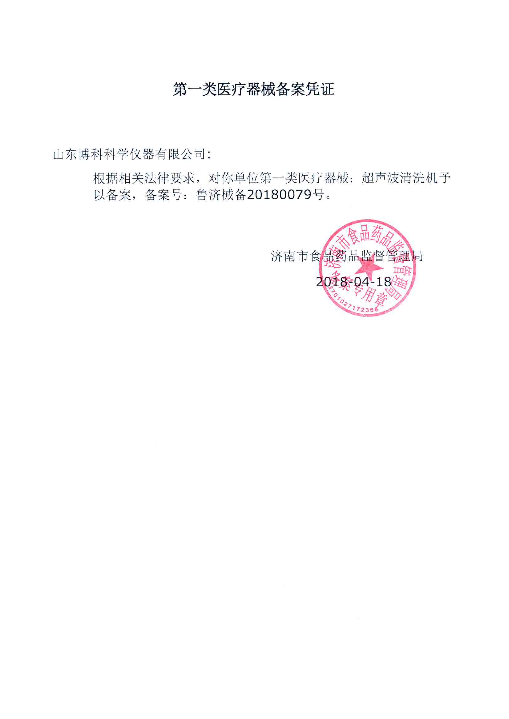 熱烈祝賀博科科學儀器公司取得超聲波清洗機產品的備案憑證和信息表