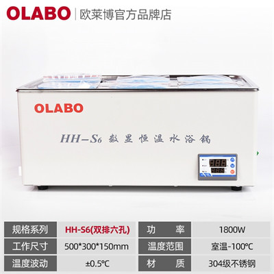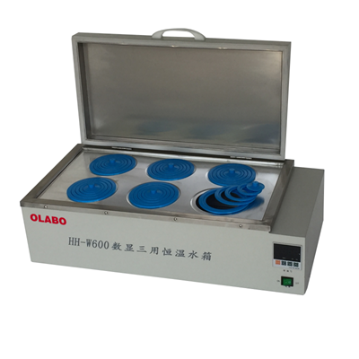 歐萊博 HH-W420 電熱恒溫水浴鍋適用于蒸餾、濃縮干燥及恒溫加熱化學藥品、生物制品、檢查血清和生化實驗, 恒溫培養以及對注射器和小型手術器械進行煮沸消毒之用。溫控系統采用可靠的調節控制裝置,感熱性能強、靈敏度高、水溫波動性小。