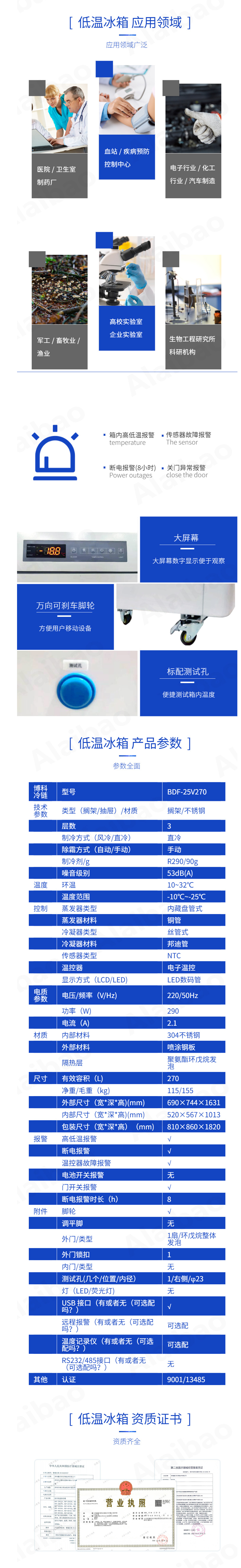 -25℃、270L低溫冰箱