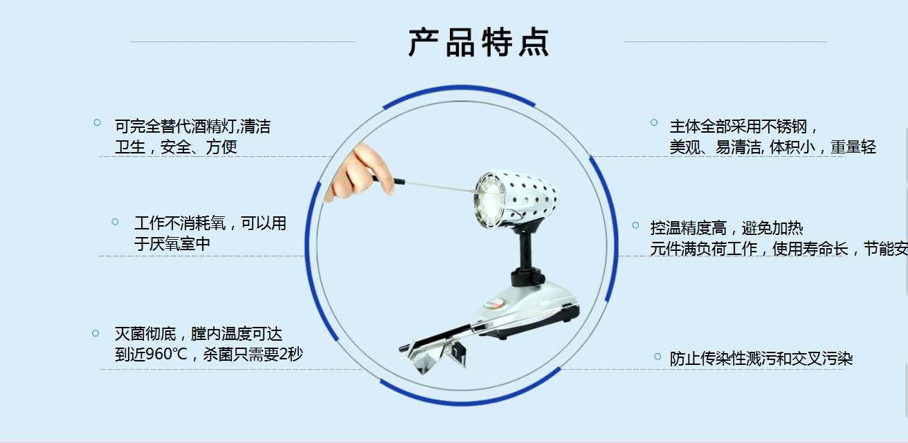 用火焰消毒是古典的微生物學(xué)方法,但由于會產(chǎn)生氣溶膠, 并使安全柜柜內(nèi)氣流紊亂,盡量不要使用。 酒精燈是目前實驗室常用的低中溫加熱及灼燒滅菌工具, 但是酒精燈外焰用來消毒揮發(fā)的氣體會累積在安全柜內(nèi),點火時很容易產(chǎn)生氣爆現(xiàn)象而遭火焰灼傷。